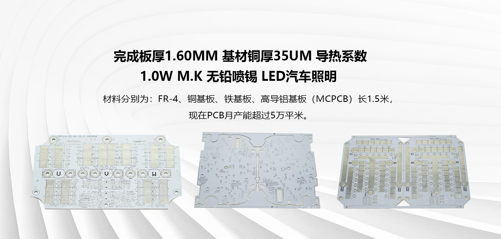 昆山世學電子有限公司,專業生產單面PCB印制板,公司的定位是“努力打造成為華東最具性價比的印制板廠”。PCB板服務于大部分電子產品,如:LED室外景觀照明、LED智能照明、LED工業照明、LED植物照明、LED汽車燈照明、背光源、以及LED燈具等,材料分別為:FR-4、銅基板、鐵基板、高導鋁基板(MCPCB)長1.5米,現在PCB月產能超過5萬平米。